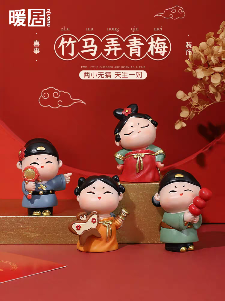 国潮竹马系列摆件一套