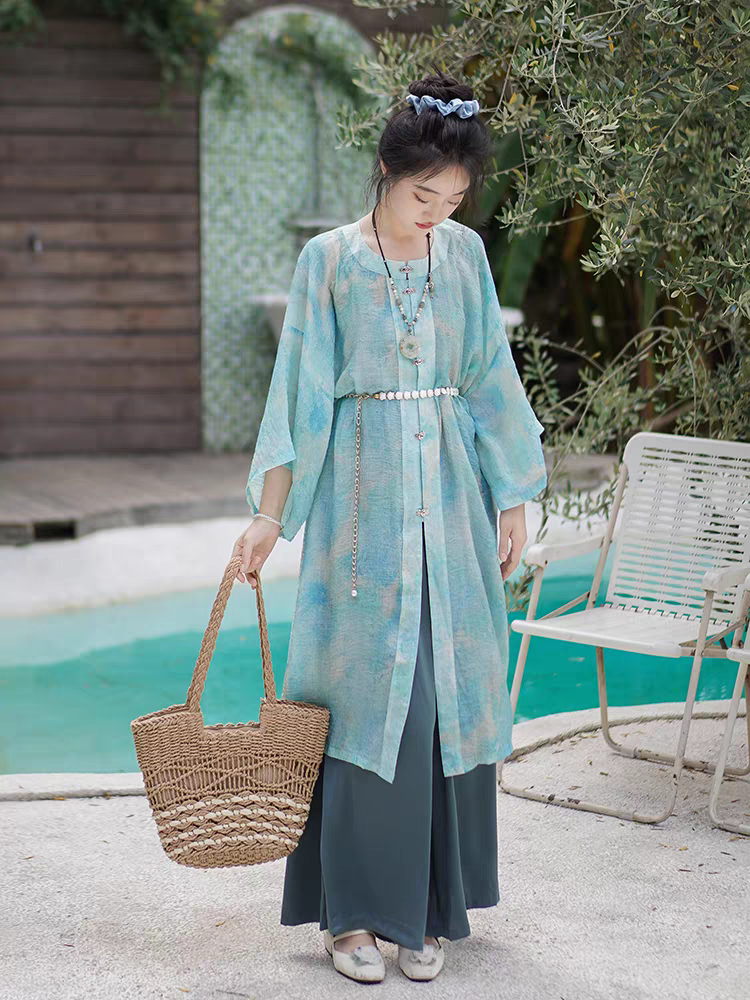 汉服圆领对襟长衫宋裤配套日常通勤禅意穿搭S-L